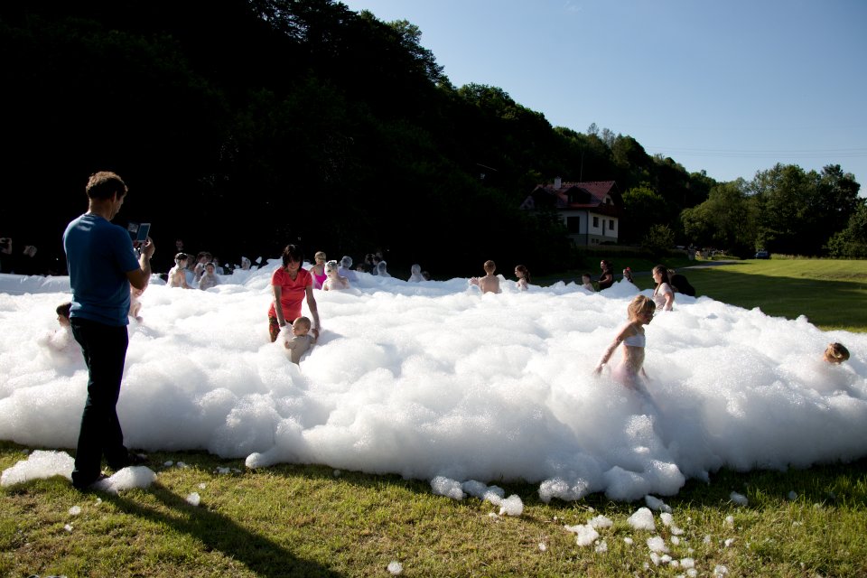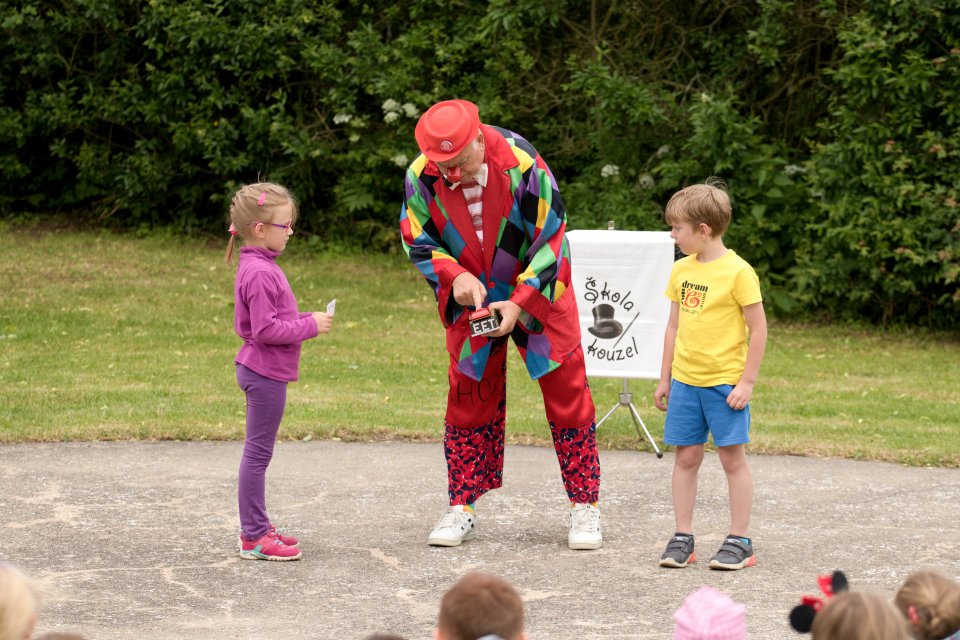 Kouzelník se snažil a dobré bylo, že se děti samy mohly zapojit do kouzlení. Nechyběl kvíz se sladkou odměnou, taneček a skákací hrad.Zlatým hřebem dětského odpoledne bylo řádění v pěně. Slunce svítilo, tak děti o tuto oblíbenou diciplínu nepřišly.