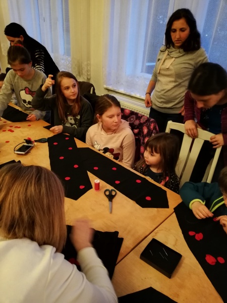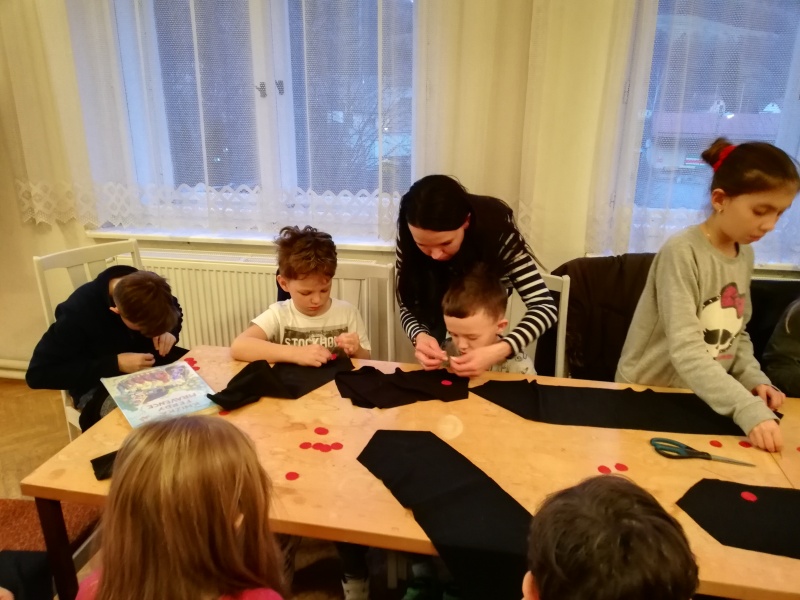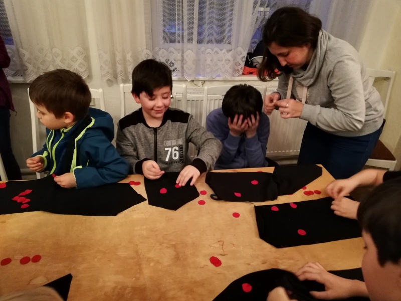 Začátek nemohl být jiný, než četba z knihy. Po té si děti mohly vyrobit svůj „Ferdův šátek“, bylo moc zajímavé děti pozorovat při šití puntíků na šátek, ale musíme říct, že se s tím všichni statečně popasovaly. A protože Ferda je mravenec práce všeho druhu, dostaly děti rozdělené do dvou skupinek za úkol postavit domeček pro potřeby mraveniště.
