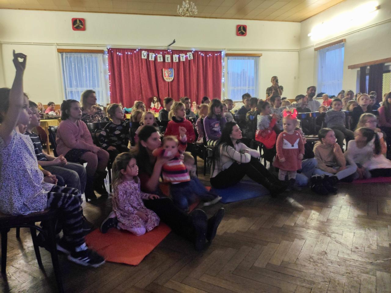 Celé odpoledne začalo nácvikem písniček pro Mikuláše, děti to bavilo a i díky tomu se nadílka vydařila. Ale ještě předtím došlo na čertovsky zajímavé pokusy, které nám předvedla Veronika. No a potom už přišel Mikuláš. napřed tedy vtrhli do sálu čerti a dělali pořádný hluk. Příchod Mikuláše ale všechny uklidnil, a jestli nějaká slzička ukápla, tak potom velice rychle oschla. Děti předvedly naučený tanec, zazpívaly písničku a protože se Mikulášovi hodně líbila, tak si ji zazpívali znovu všichni, i dospělí. Není přece na škodu, když i dospělí slíbí, že budou na sebe hodní.