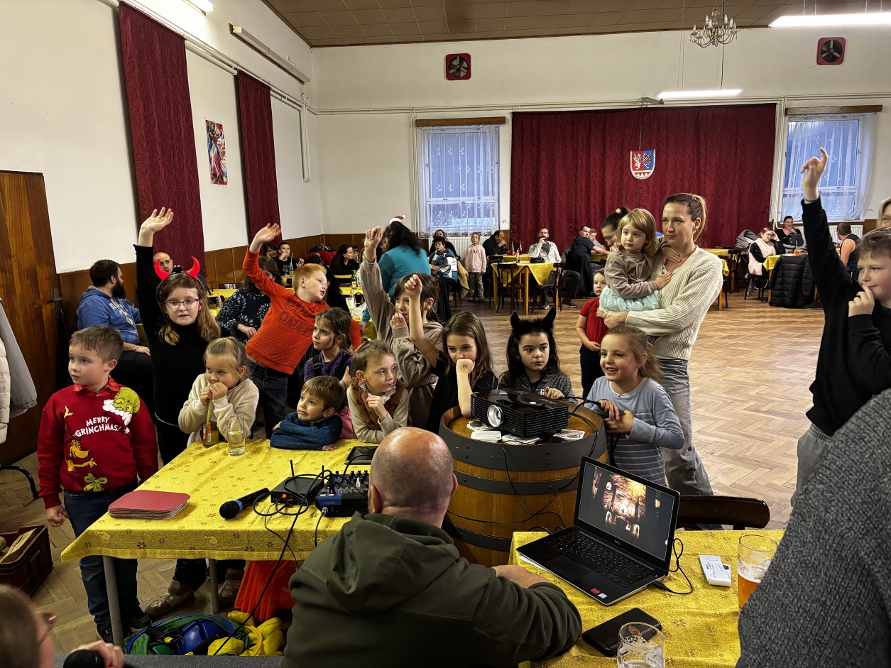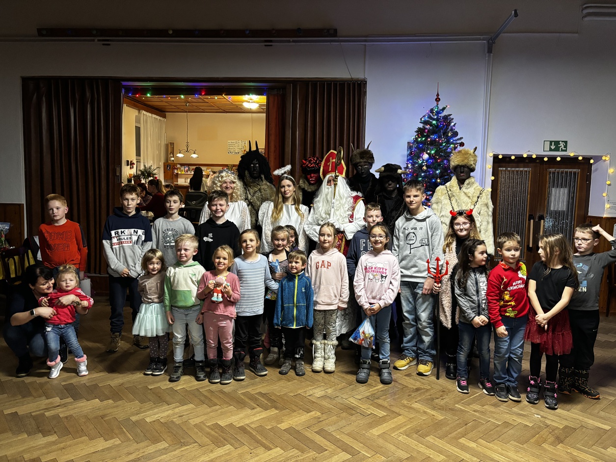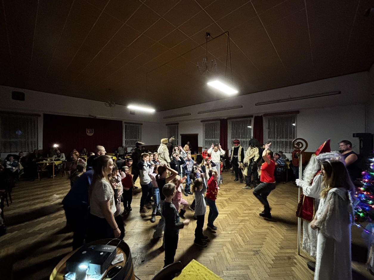 Sobota tradiční Mikulášské nadílce. Celé odpoledne bylo plné hudby, tance a programem s čerty do pohádky. Mikuláš naše děti pochválil, i přesto, že se mezi nimi nacházejí rošťáci, kteří slíbili, že se pokusí do příštího roku polepšit. Rozdal spolu s andílky 40 dárečků, které si děti za celoroční snažení zasloužily. A čerti? Ty od nás odcházeli do pekla s prázdnou. Moc děkujeme všem za společně strávené odpoledne.